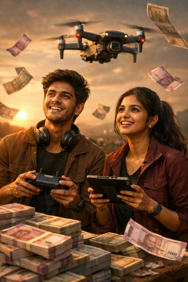 ₹5,000 – ₹25,000 per project (Weddings, land surveys, event coverage) 2–3 projects per month = ₹30,000–₹60,000 easily.